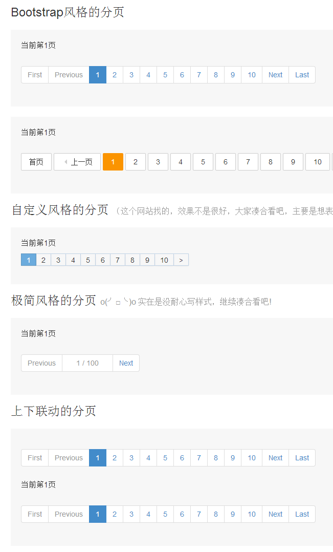 我心中理想的分页组件,要不受 CSS 框架限制,可以使用在各种不同风格中的网页中。以我浅显的经验来看,要达到这个目标,关键的一点就是高度自定义的 Html 结构。所以 jqPaginator 努力做到合理范围内的自定义,使其灵活的使用了各种不同的场景。