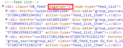 可以看到 feed list 的外层 div 上自定义了pagenum 属性方便 js 操作。