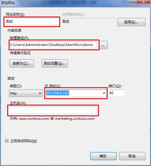 IIS 中新建站点#