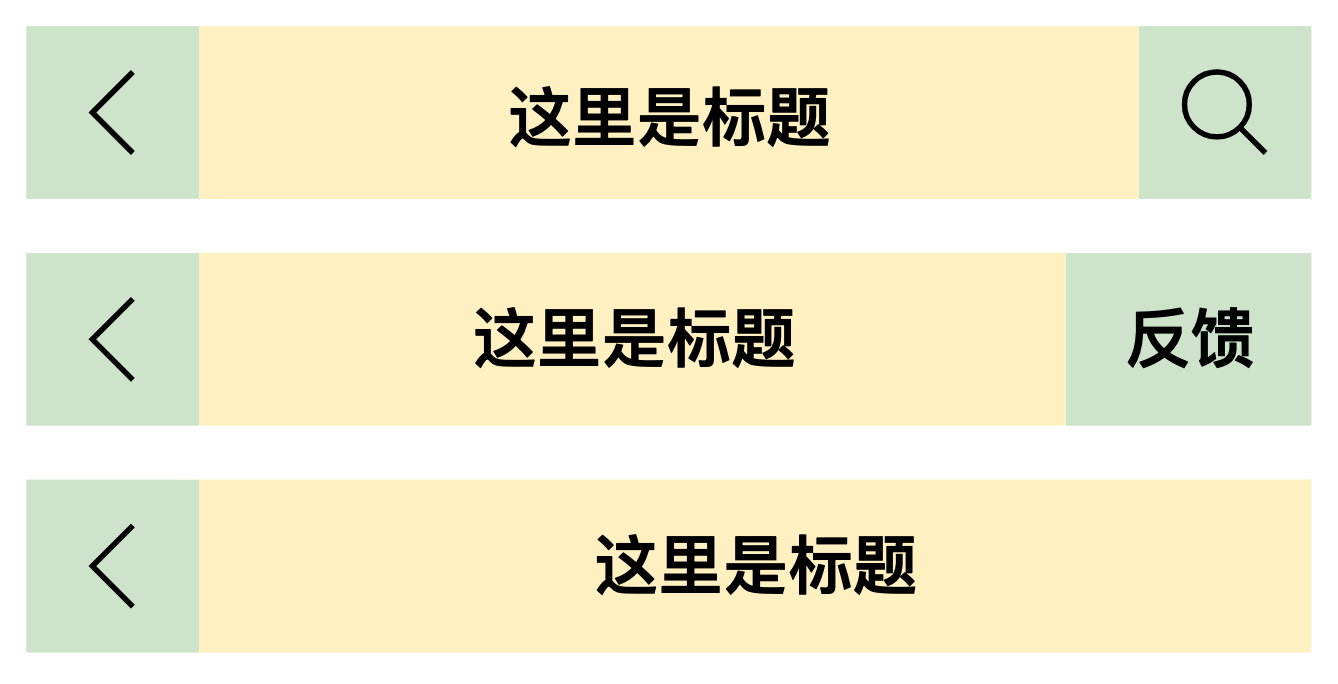 - 左边:返回按钮,可能要适配 Android 和 iOS 的不同风格,看 APP 的精细程度