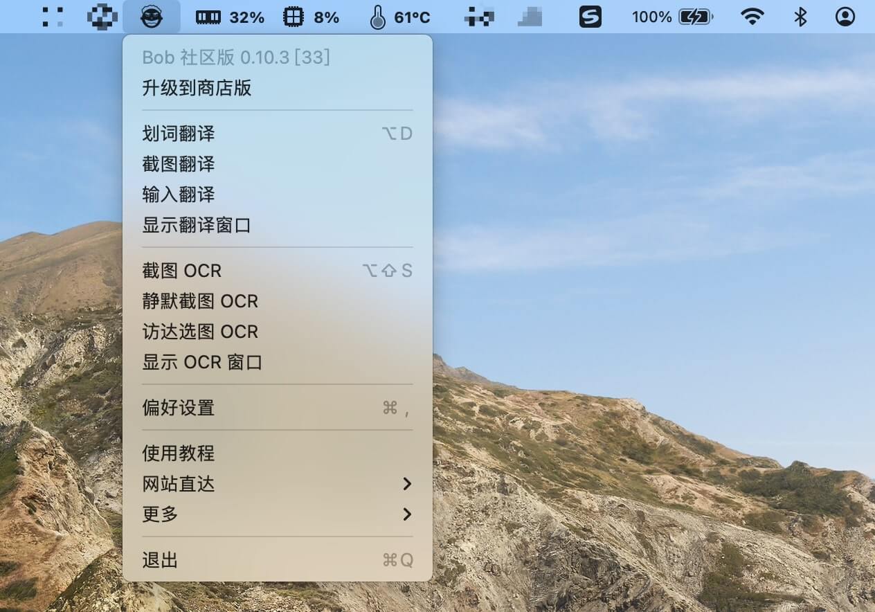 Bob 是一款 macOS 平台翻译和 OCR 软件,非常好用。不过作者开始开发商店版之后,社区版就很长时间没更新过了,好在没发现什么 Bug。
