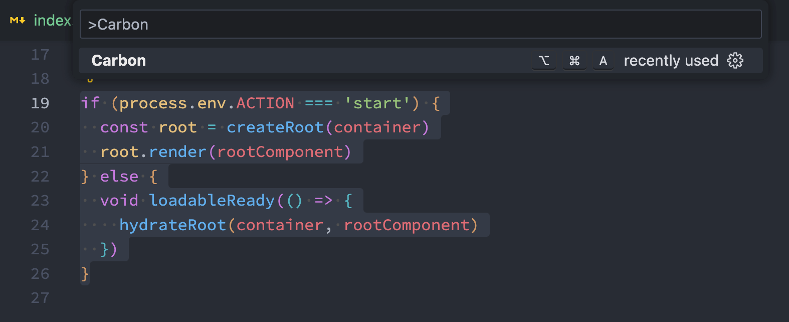 Carbon 就是这样一款工具,可以直接安装 IDE 插件,选中代码通过命令跳转到在线编辑。也可以直接打开网站 copy 进去编辑。