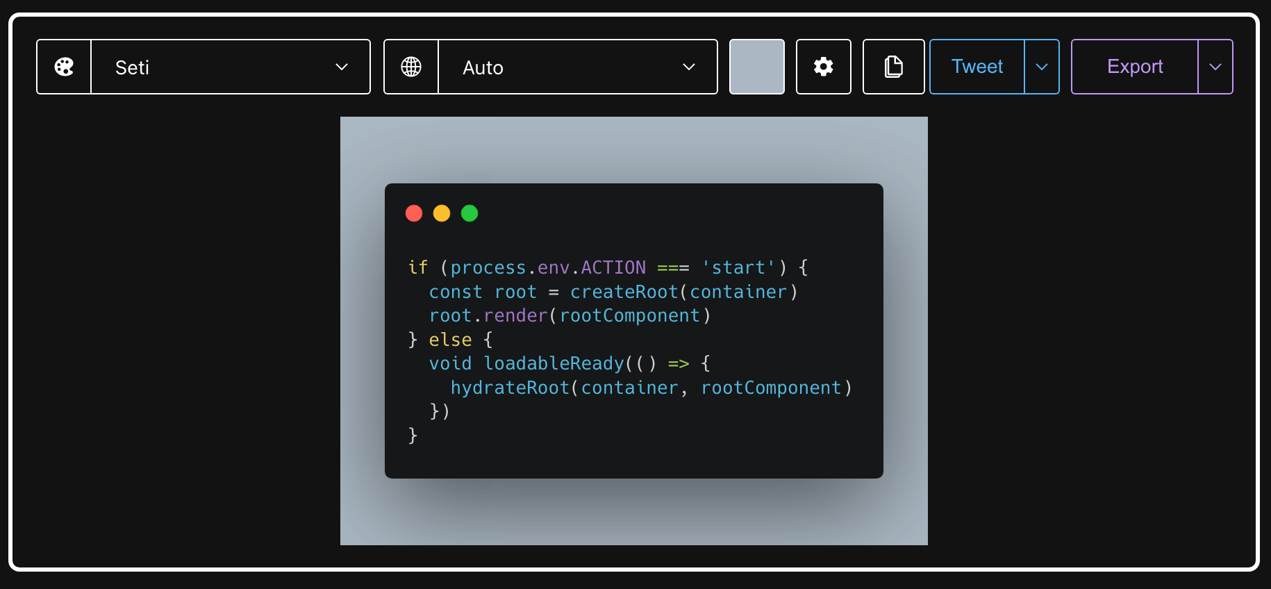 作为开发,平时写 PPT、文档、技术方案的时候,经常需要展示代码片段。在不同软件、设备上,让代码片段保持良好且一致的展示,最简单的方式就是转为图片。