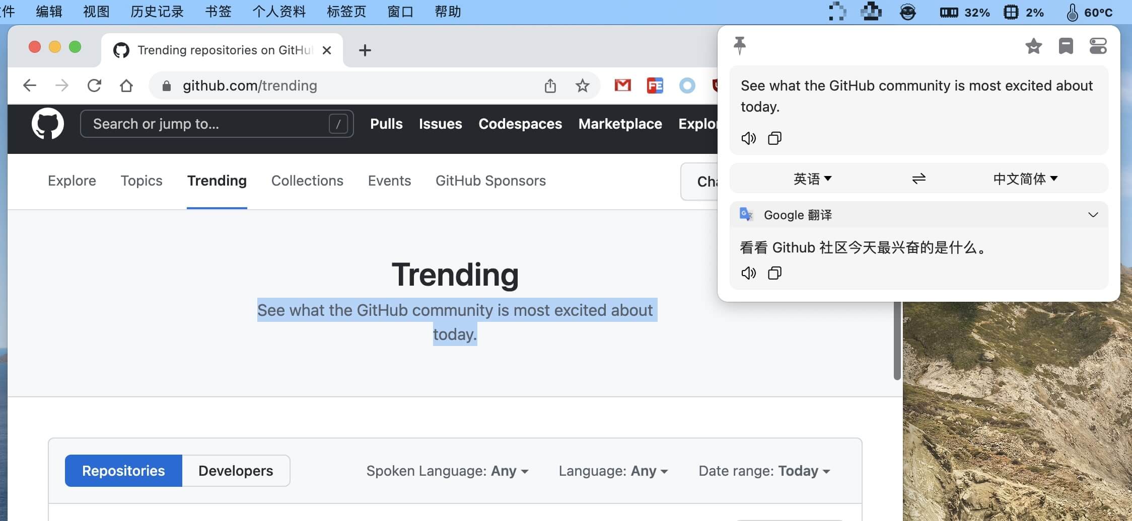 在「划词翻译」上,之前使用了很长一段时间的各种 chrome 扩展,但都些小毛病最后放弃了。目前最满意的还是 Bob,除了免费词典少没毛病。如果你喜欢命令行的翻译软件,推荐下我开发的 EazyDict。
