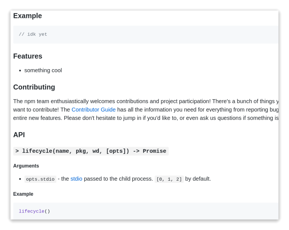 npm-lifecycle 是 npm 的 lifecycle script runner,独立出来没多久。这个包文档写的非常粗狂,几乎没有示例,没有 api。甚至没有注释。