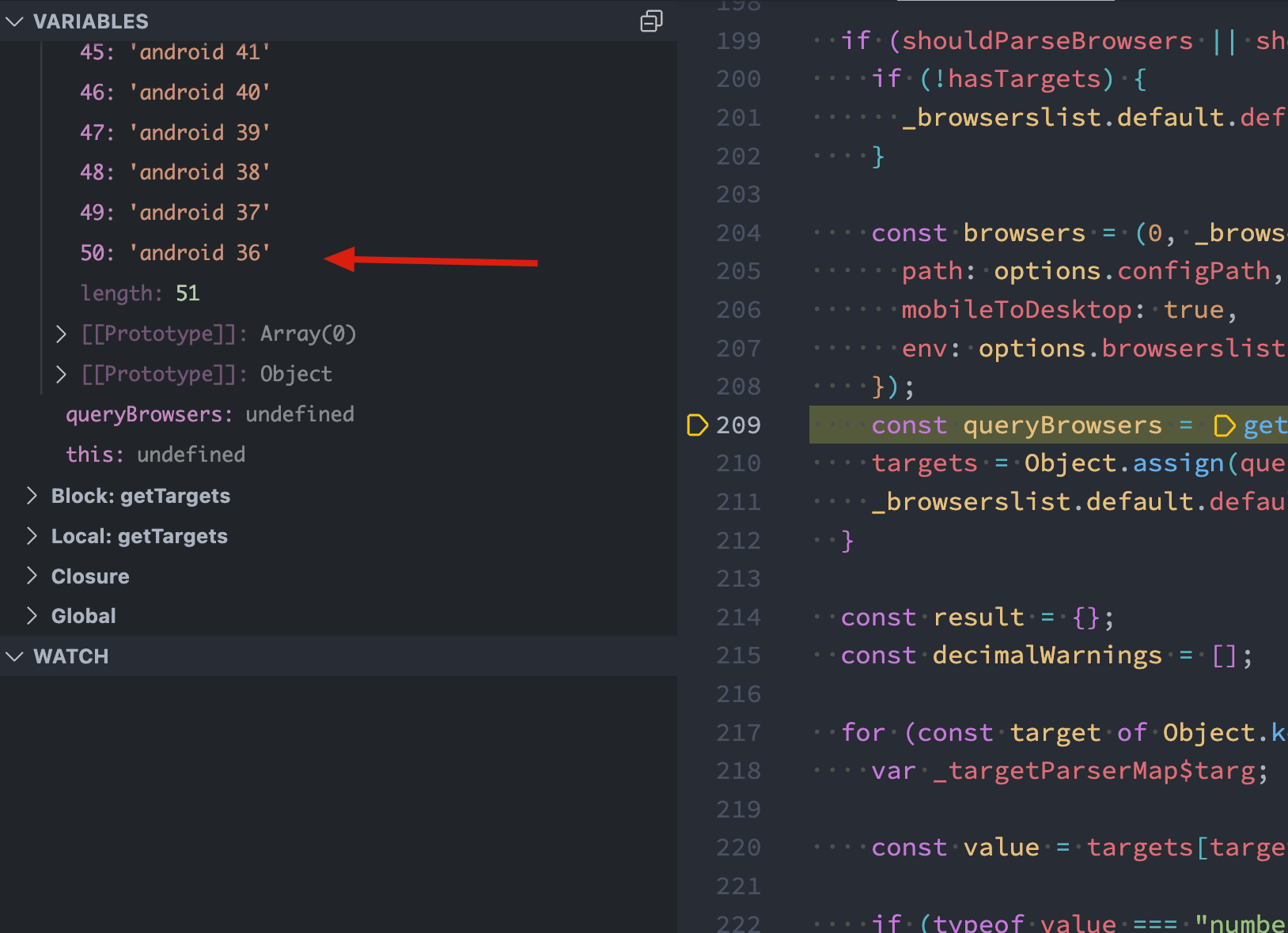 Browserslist 通过 caniuse-lite 这个包,使用 caniuse 的数据,把 targets 转为具体的浏览器版本。但是 caniuse 的数据有个大问题:从 4.4 开始,它的 android browser 仅有最新版的数据,也就是上文看到的 108。